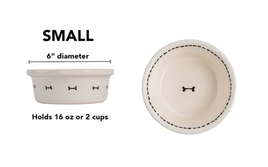 Bone & Stitch Collection - Handmade Ceramic Pet Bowl with Black Design on White Clay