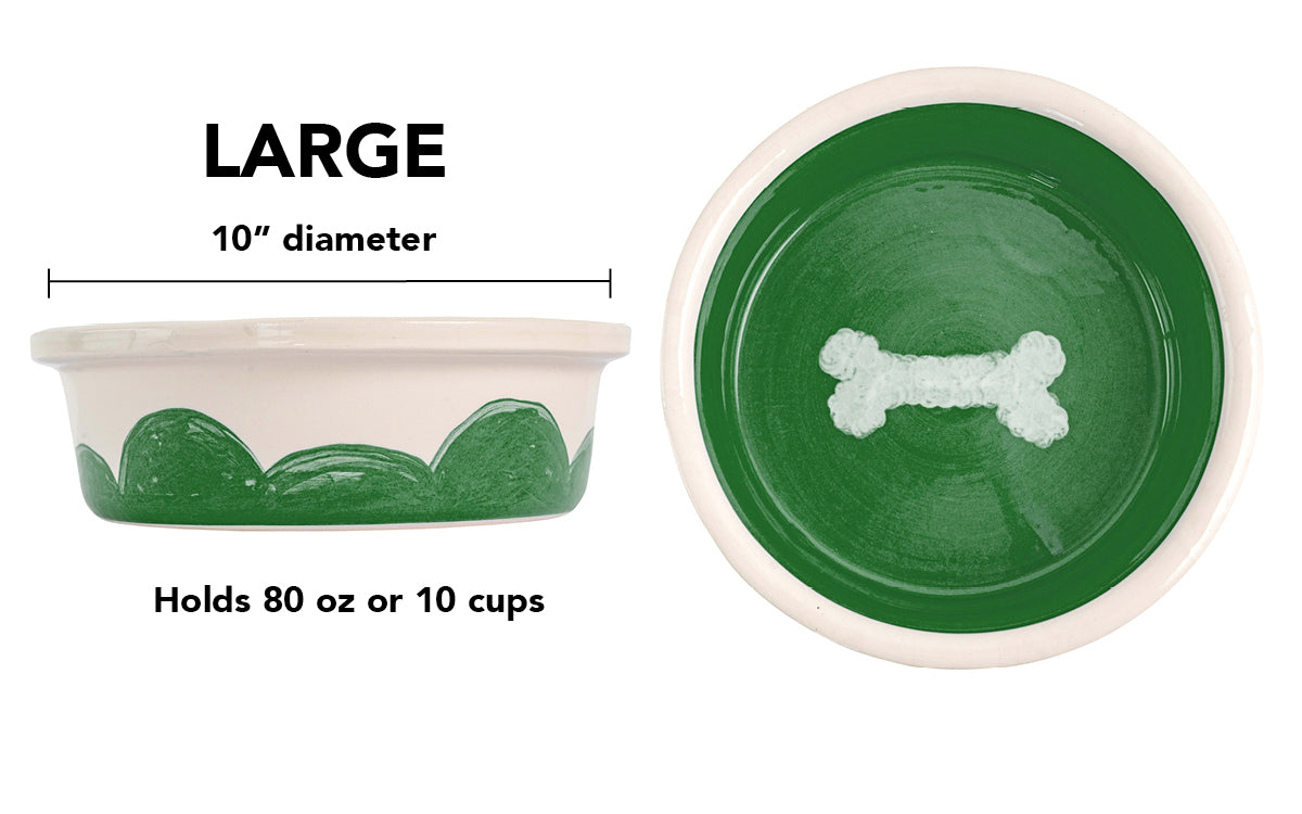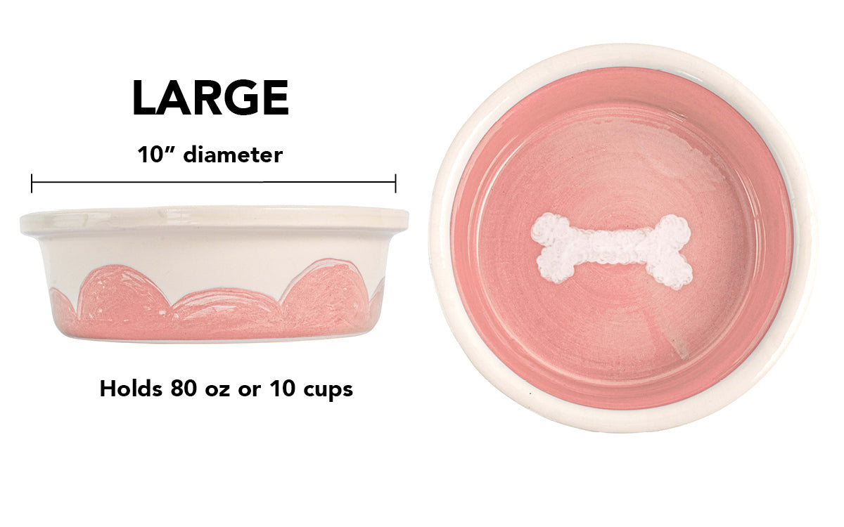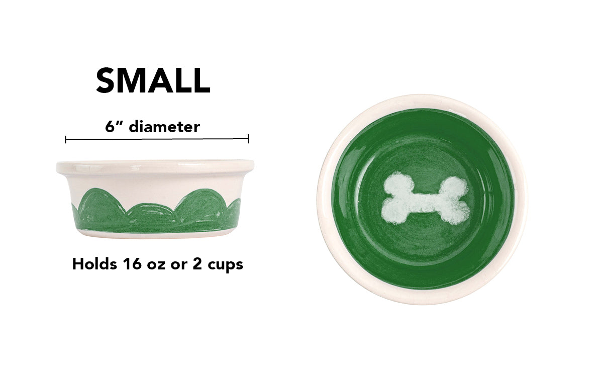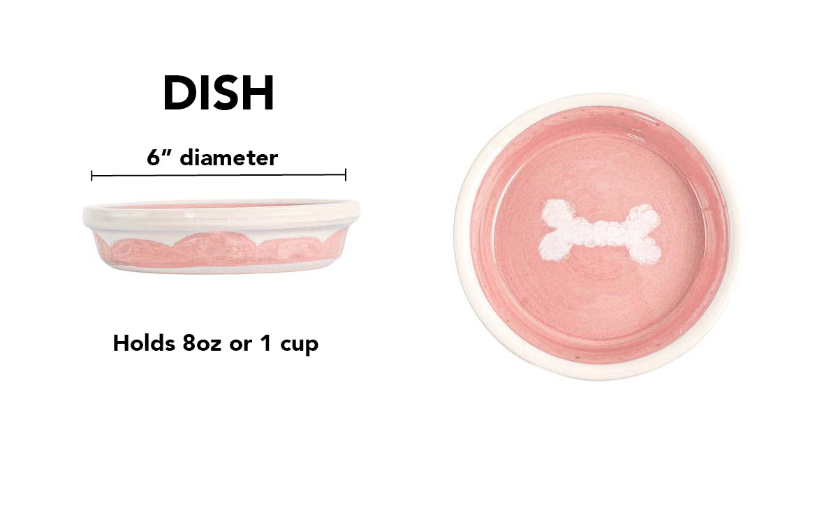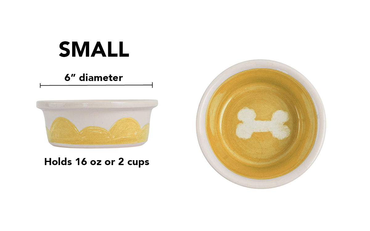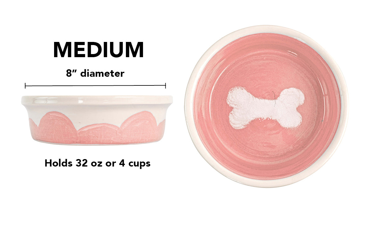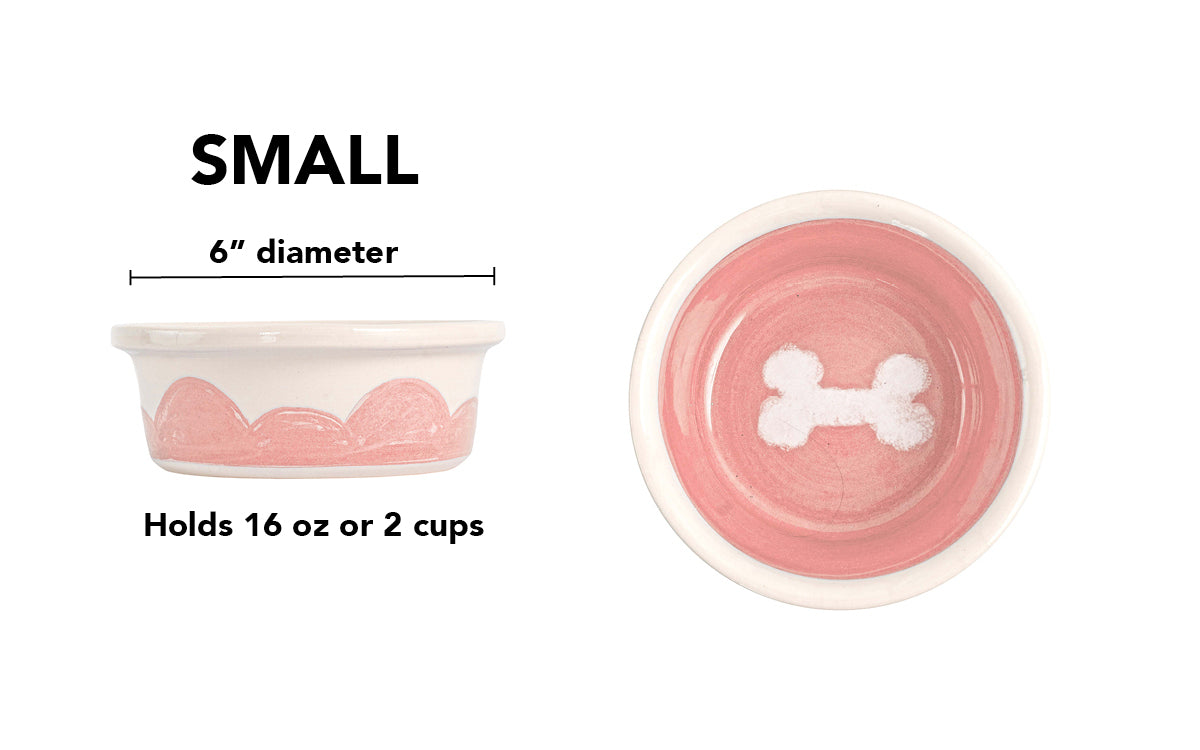 The Sky Biscuit Collection features a charming puffy white bone nestled in a hand-painted glaze, giving each bowl a soft, cloudlike touch. A playful scalloped design wraps around the outside, adding visual texture without overwhelming the form. Each bowl is painted by hand, so no two are exactly alike — making every piece as special as the pet who uses it.